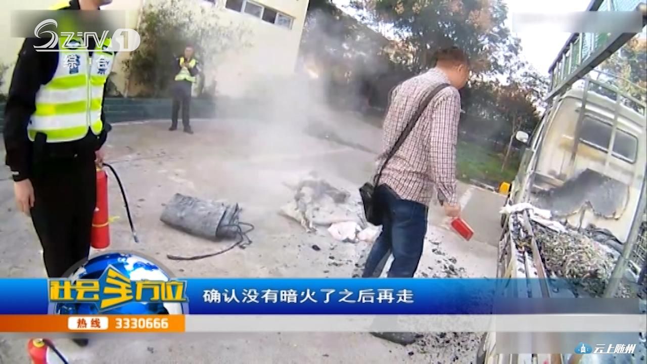 最后民警指导驾驶员对车内暗火进行处置,并嘱他行驶途中要注意后方情况,发现有燃烧的迹象要及时冷静处置。