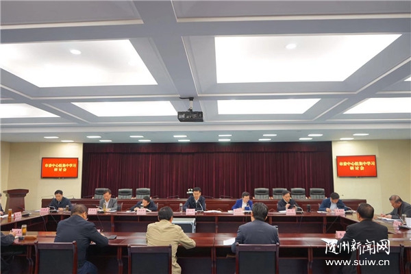 11月13日,市委中心组举行集中学习研讨会,专题学习党的十九届四中全会精神。市委书记陈瑞峰主持学习并讲话,强调要把学习宣传贯彻党的十九届四中全会精神不断引向深入,切实把思想和行动统一到党中央决策部署上来,坚定制度自信,强化制度执行,推动全会精神在随州落地生根,不断提高市域治理现代化水平。