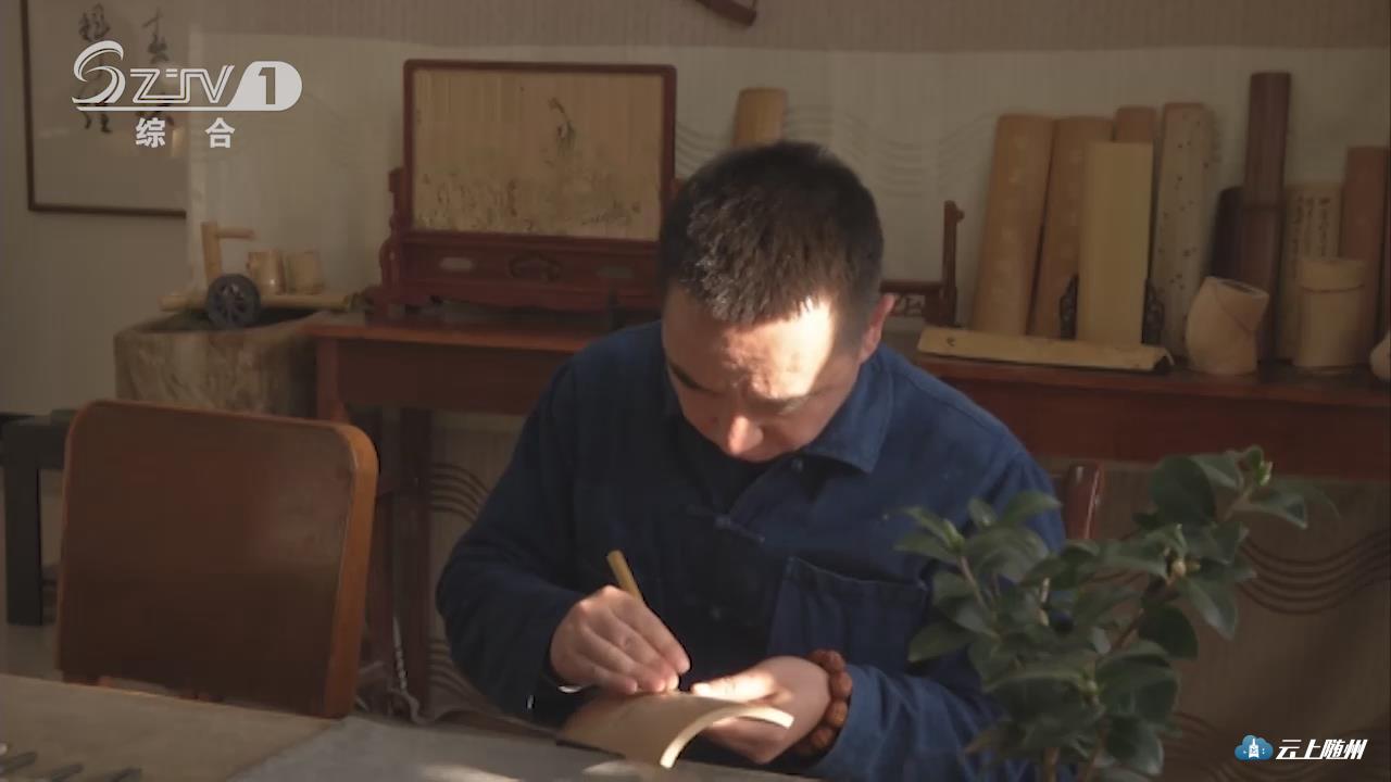 38岁的席宏文是随州职业技术学院的一名老师。十多年前,一个偶然的机会,他对竹刻产生了浓厚的兴趣,从此便一发不可收拾。