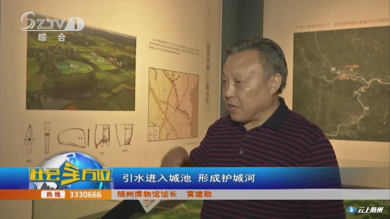 【采访】随州博物馆馆长 黄建勋:这张照片是庙台子的一个航拍照片,庙台子的价值在是我们西周早期周成王分封到随州来建都立国的第一个都城,可以说是我们随州的第一个城市,最早的城市,它的意义非常重大,这个目前的遗址,我们通过发掘证明它有北台子和南台子,都是内城,四周有环城的城壕,而且城市最先进的地方是从漂水流域的上游,引水进入城池,形成护城河,转一圈再从下游排下去,这应该说是最早城市的最具有环保意识的古代的都城。