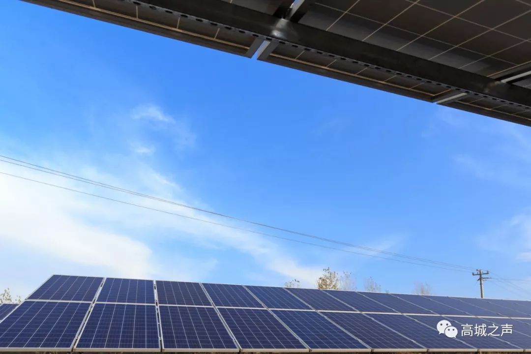 山脚下整齐的村集体光伏发电场,为新时代的农村输送新的电力能源。