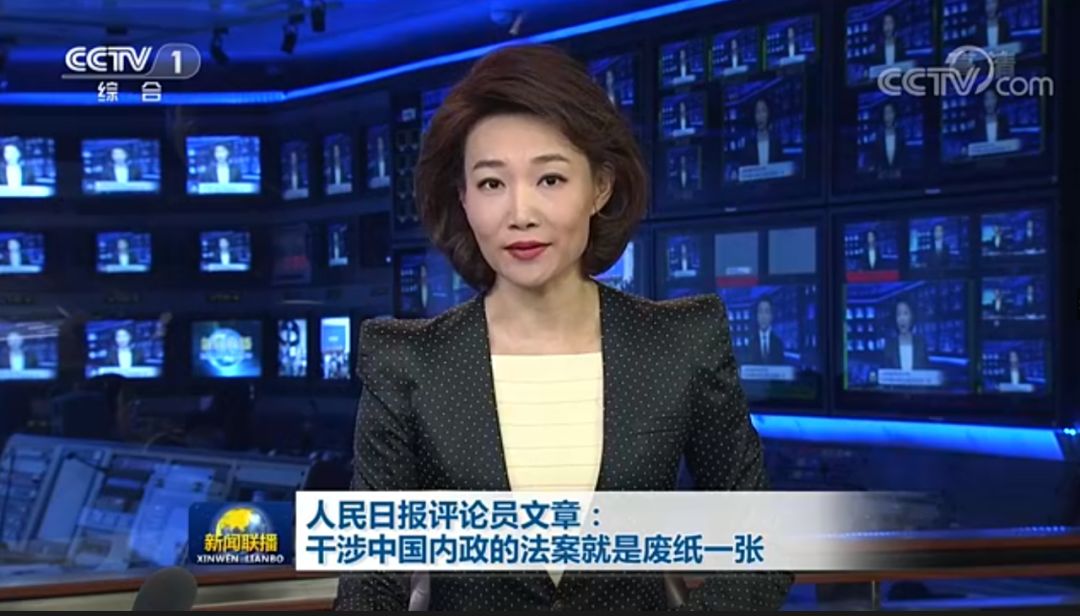 明天出版的人民日报将发表评论员文章《干涉中国内政的法案就是废纸一张》