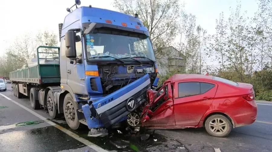一辆小型载人电动汽车与一辆半挂车相撞
