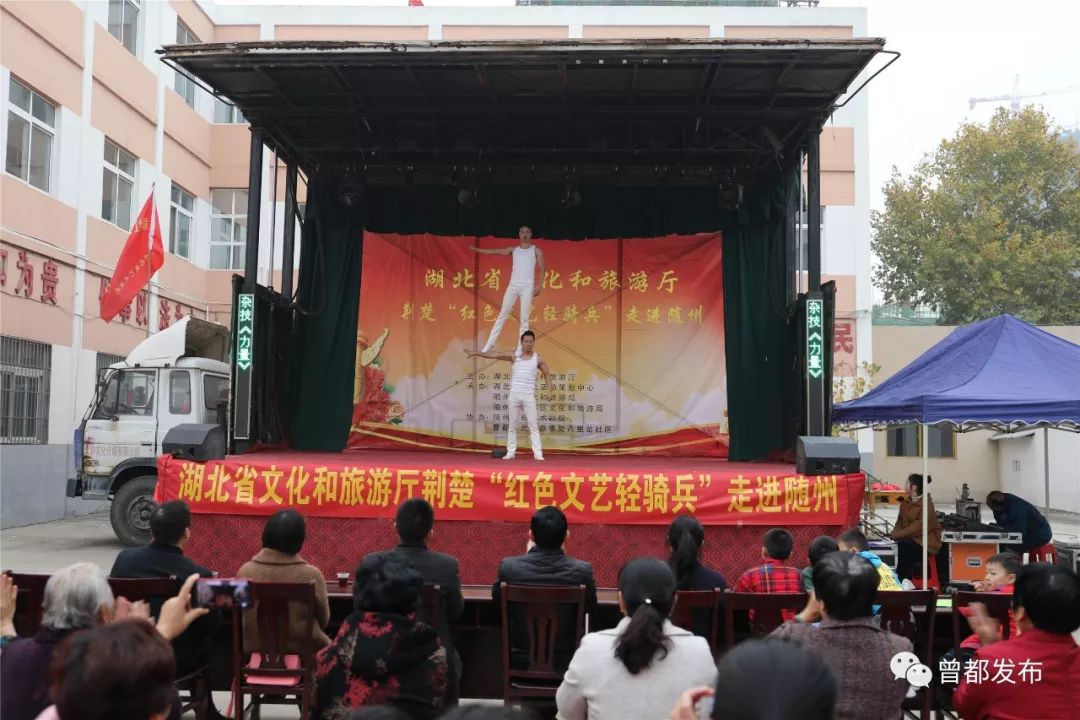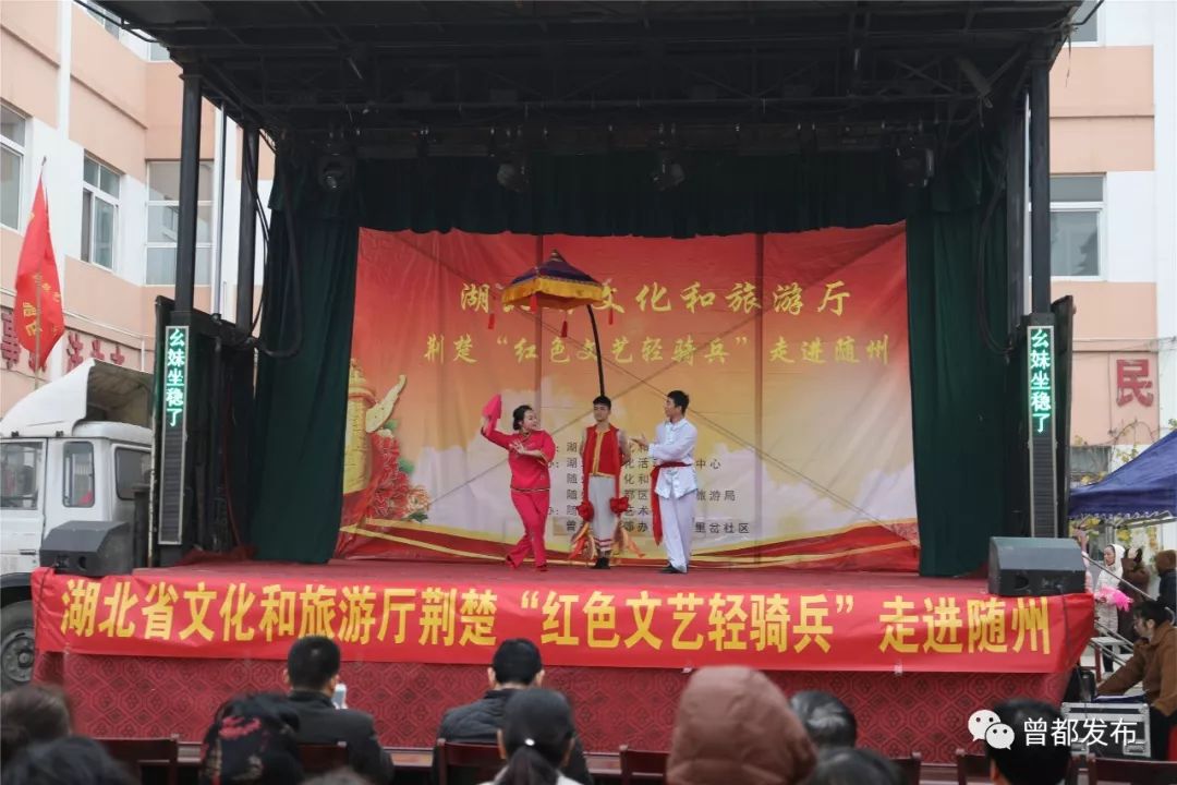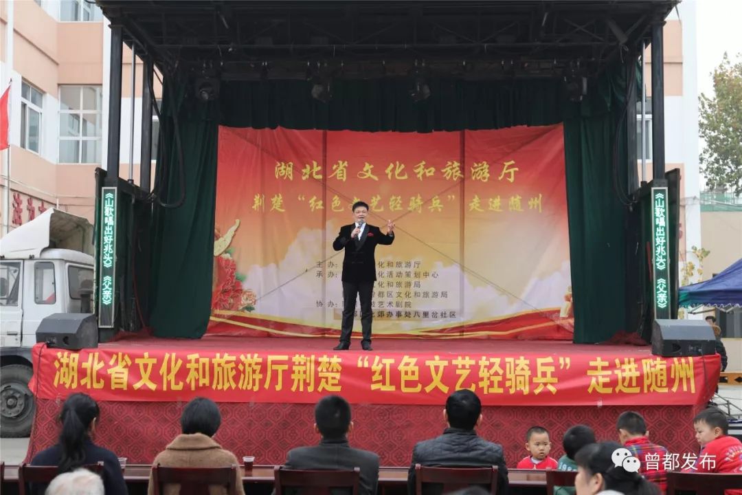 11月24日,湖北省文化和旅游厅荆楚"红色文艺轻骑兵"到曾都区北郊办事处八里岔社区开展送戏下乡文艺演出活动,为当地居民带来了一场丰盛的文化盛宴。