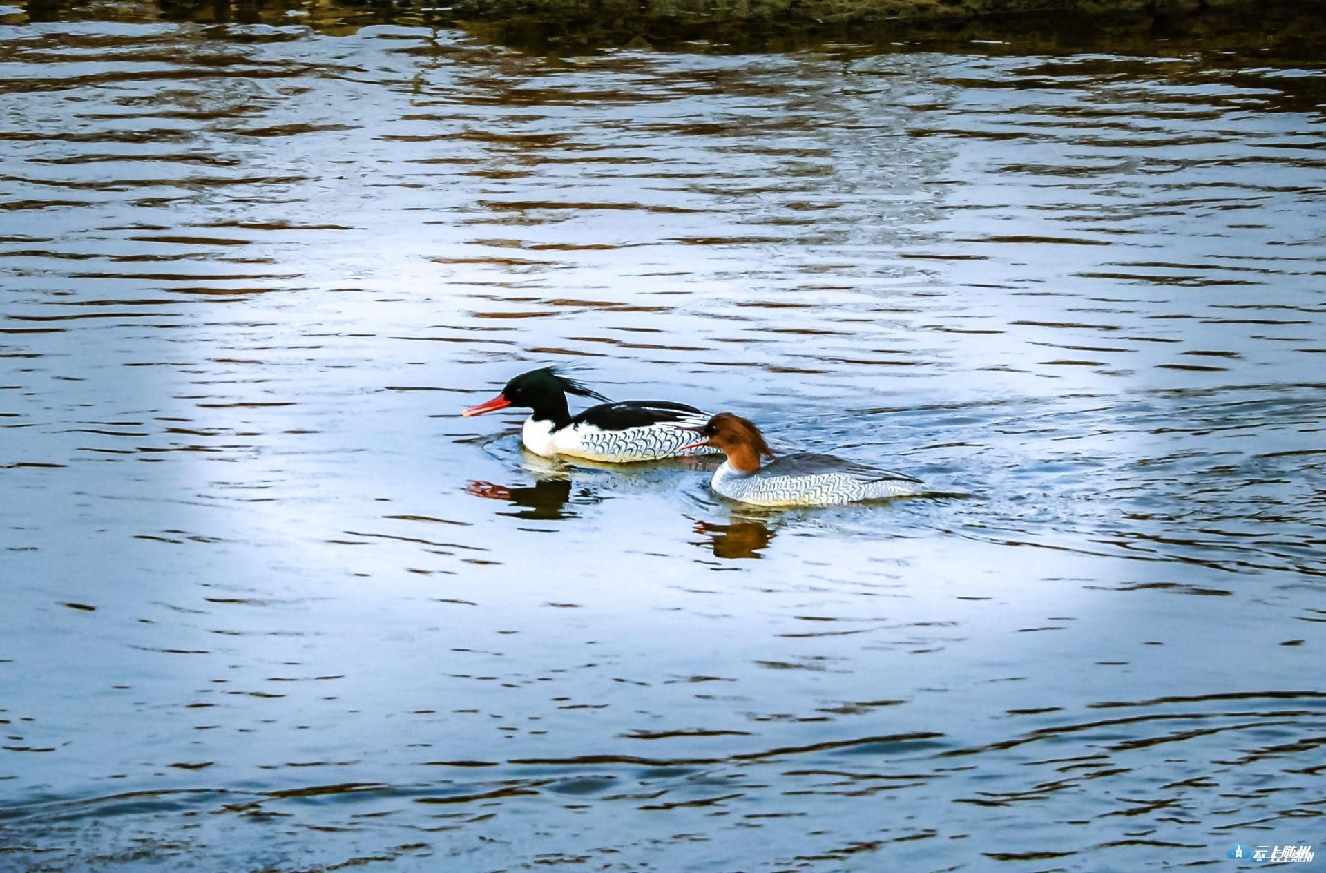 随着寒潮南下,我市也迎来了候鸟迁徙高峰。近日,在府河下游,摄影爱好者再次发现并拍摄下了国家一级重点保护野生动物中华秋沙鸭的亮丽身影,而且一次就发现了8只。