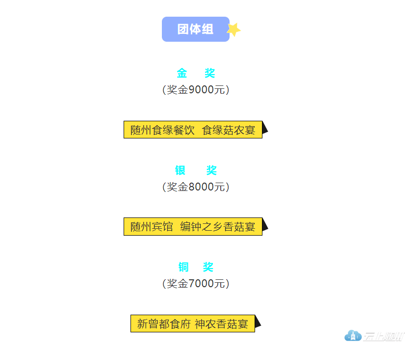 本次大赛分团体赛和个人赛两大类,共有7支参赛团队和24名个人选手进行厨艺大比拼,特邀中央电视台《乡村大舞台》制片主任盛卿珊,中国烹饪大师、国家级高级评委、湖北省烹饪酒店行业协会专家副会长、湖北省餐饮业供应商协会委员会秘书长郭方斌,县委直属机关工委常务副书记邹华荣,随县审计局党组书记、局长贺丛华,随县城市管理执法局副局长高峰,中国烹饪大师周世贵,中国烹饪大师徐灵担任评委,每名评委从口味与质感、工艺与火候、色泽与形态、营养与卫生、创意与实用等方面进行公开公平公正的打分,经过评判,最终随州食缘餐饮荣获团体组金奖,黄刚喜获个人组金奖。