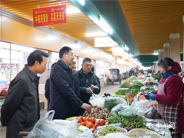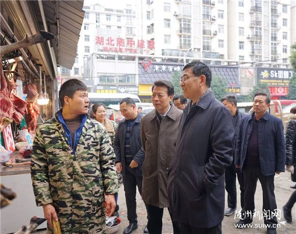 在随城五眼桥市场,陈瑞峰认真查看市场内外环境卫生、经营秩序情况,沿摊位不时停下详细了解各类蔬菜和猪肉、羊肉价格,并与前来买菜的市民亲切交谈了解情况。陈瑞峰在与大家交流时指出,“菜篮子”是重要的民生民心工程,要保障市场供应,规范市场秩序,千方百计确保老百姓的“菜篮子”安全稳定。要加强集贸市场管理,融管理于服务之中,在真心实意为老百姓办实事、解难事中加强管理,用管理的实际成效彰显服务成果。