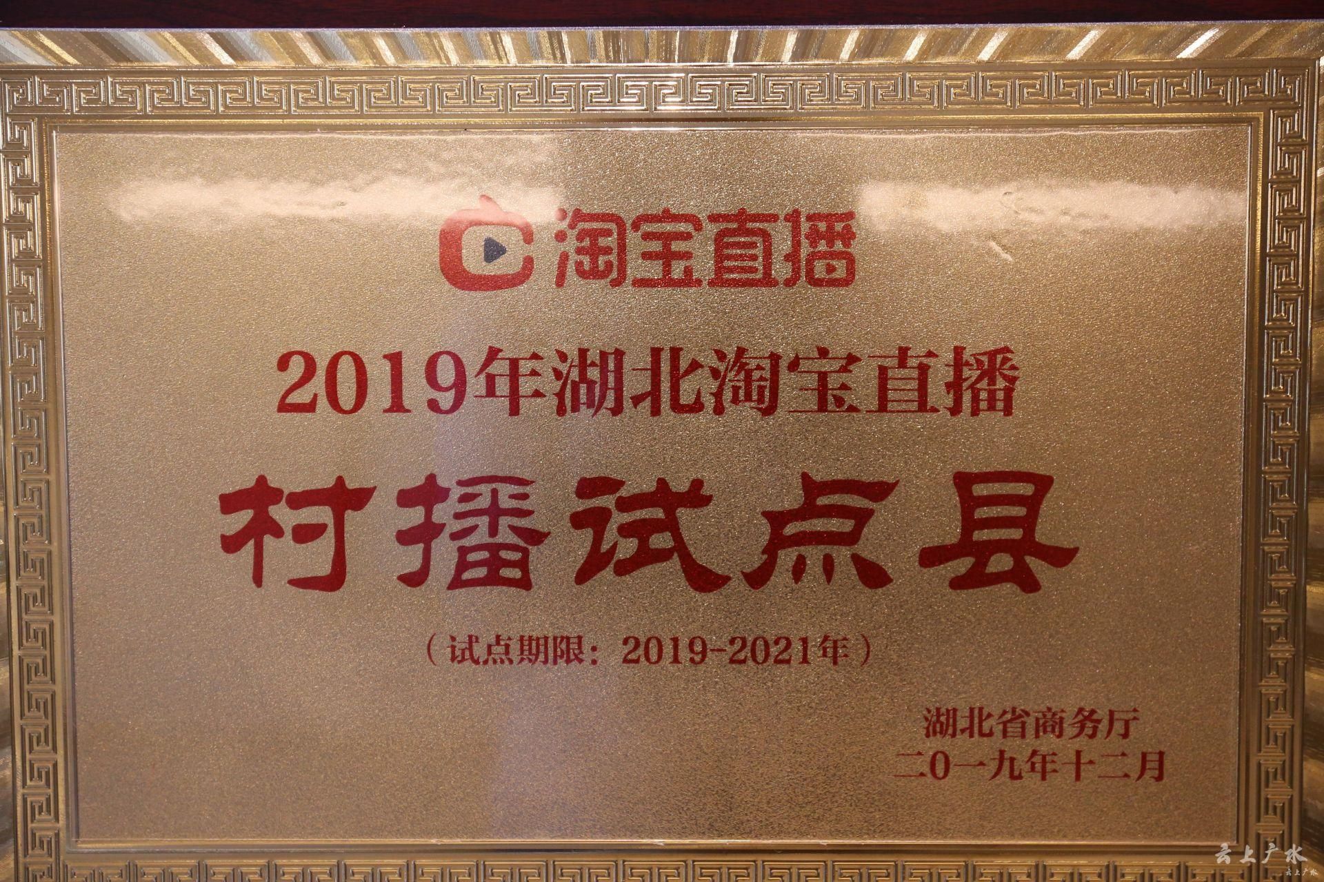 12月3日,湖北省2019年淘宝直播村播计划正式启动。启动仪式上,广水市被省商务厅授予“2019年湖北淘宝直播村播计划第一批试点县”,湖北大自然农业实业有限公司被授予“2019年湖北电商助农荣誉企业”荣誉称号。