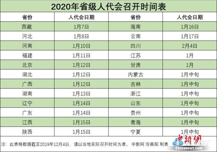 2020年省级人代会召开时间表。