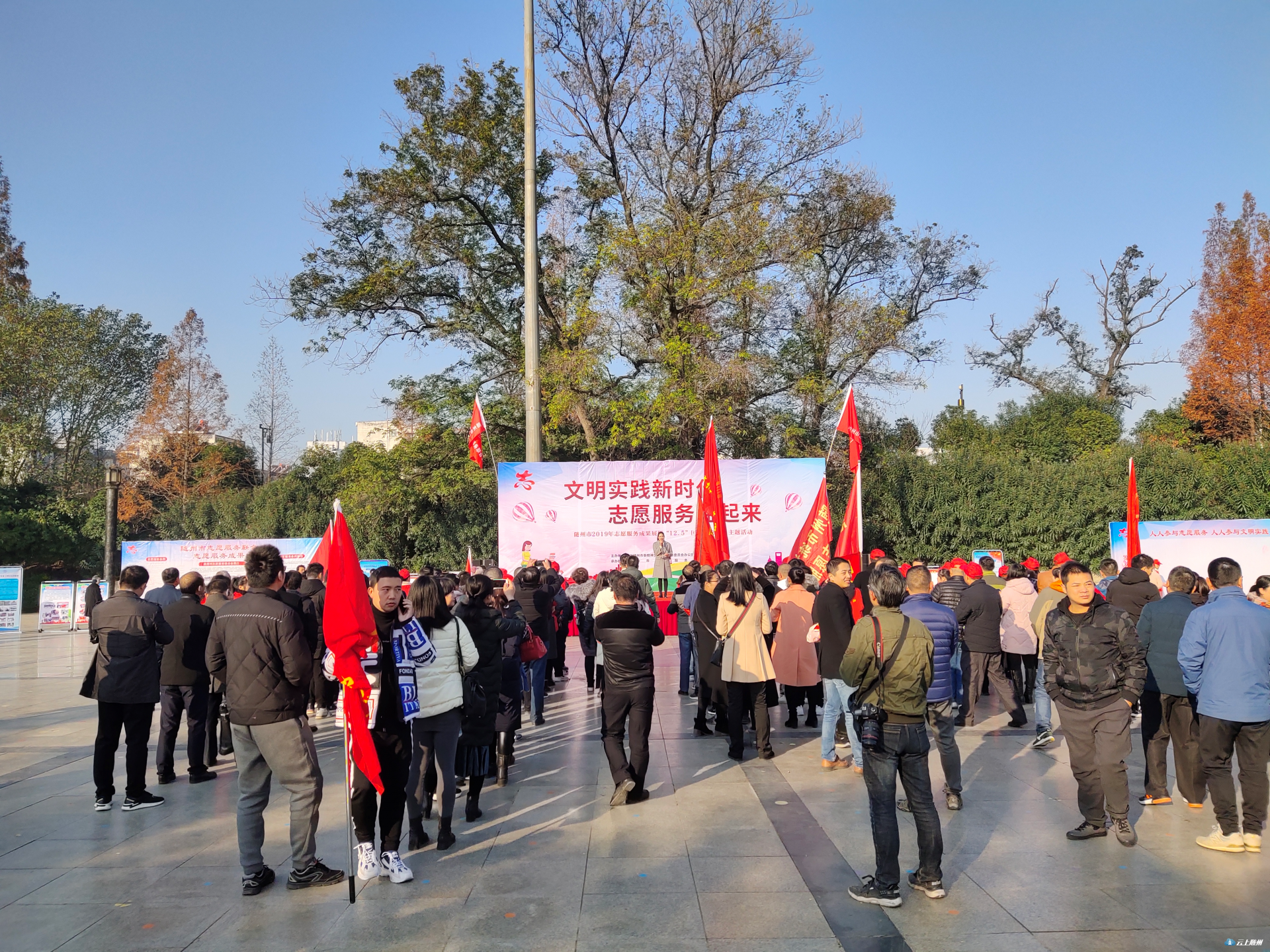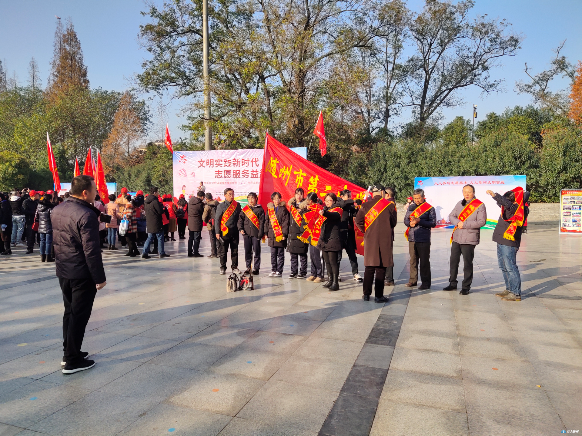 2019年12月5日是第34个“国际志愿人员日”,为大力弘扬“奉献、友爱、互助、进步”的志愿精神,展现志愿者风采,凝聚志愿力量,今天上午9时,由市委文明办、市民政局主办,市志愿服务联合会承办的“文明实践新时代 志愿服务益起来”的主题活动在神农公园文化广场展开。