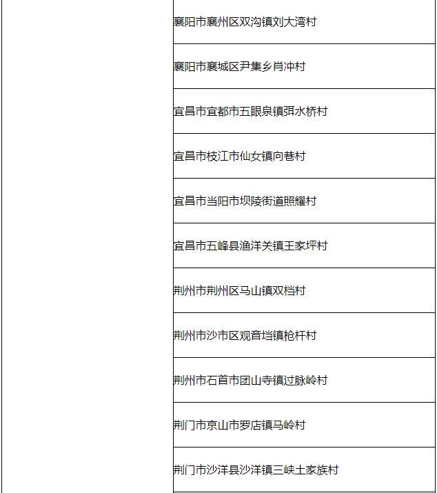 全国乡村治理示范村候选名单(湖北省)