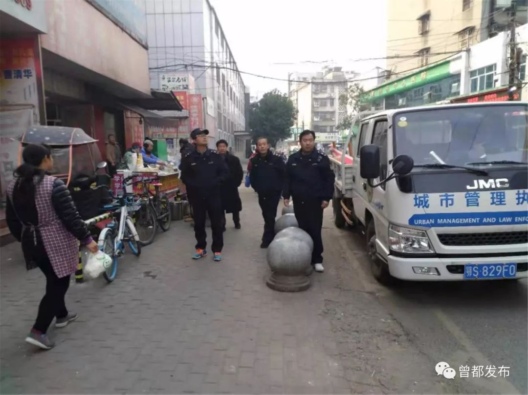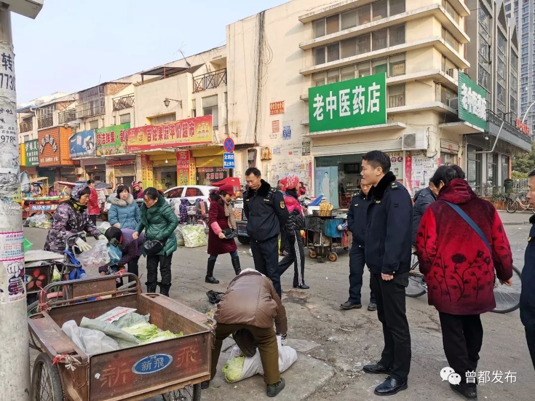 12月5日,曾都区城管执法局队员兵分两路,一队人员联合市城管执法委人员配合东城办事处,对东关小学周边、聚奎门学校周边、蒋岗市场等地段开展环境秩序整治。另一队人员联合市城管执法委人员配合西城办事处,对西城辖区内违规经营户进行规范整治