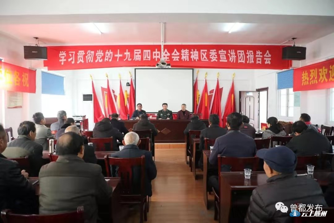 12月6日,曾都区区委常委、人武部部长魏建军到城南新区前进社区宣讲党的十九届四中全会精神。