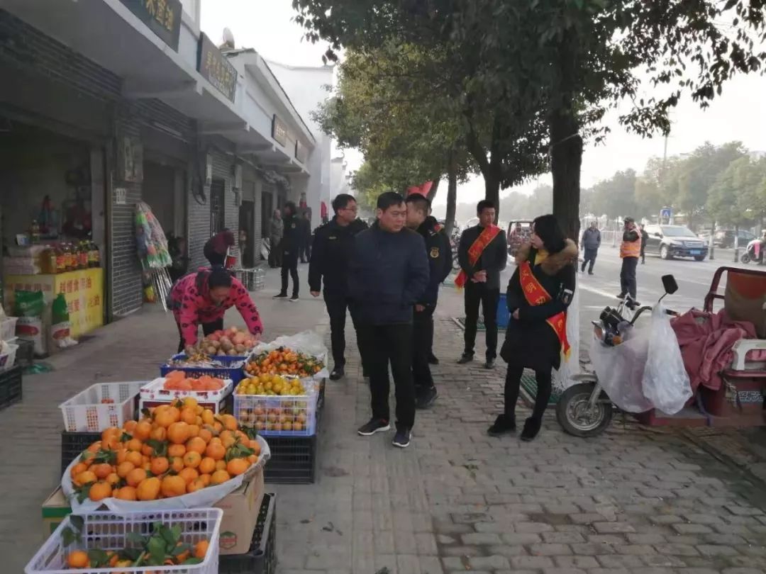 12月9日,万店镇城建专班联合国土资源、城管、万店居委会对街道进行整治,规范市场秩序,拆除乱搭乱建建筑,发放宣传单。