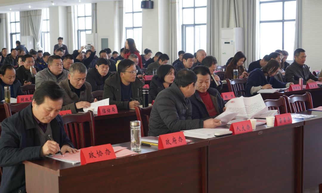 随县县委副书记、县长陈兴旺讲话,随县县委常委、政法委书记刘加进主持会议,县人大常委会副主任雷震,副县长王笠,县政协副主席梅行保参加会议。