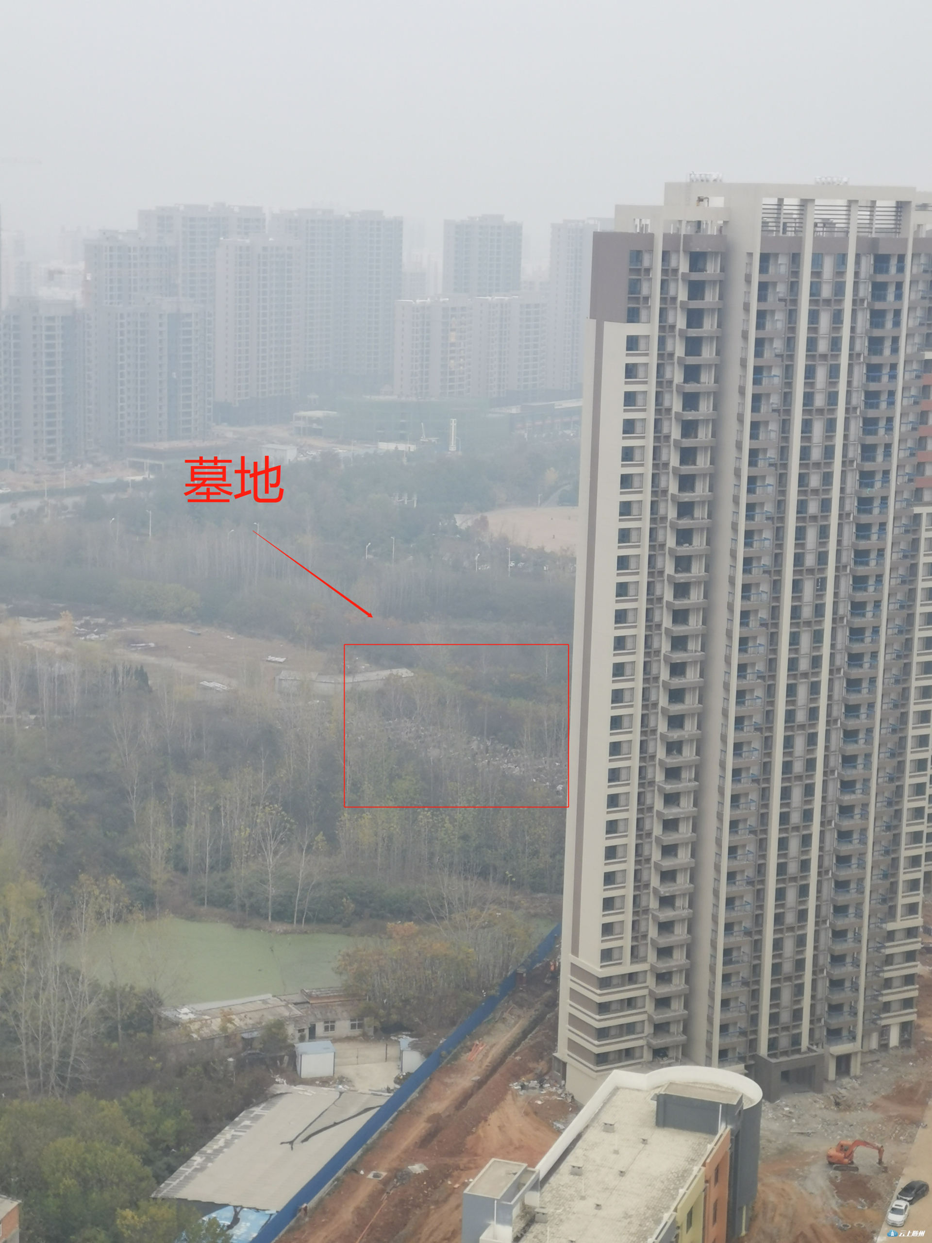 记者发现该楼盘和墓地