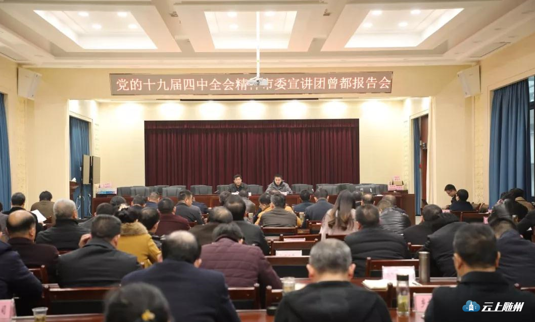 12月10日,党的十九届四中全会精神市委宣讲团曾都报告会在曾都区委会议中心举行。市委宣讲团成员、市委宣传部常务副部长孙国成作题为《坚定制度自信 书写“中国之治”新篇章》报告。