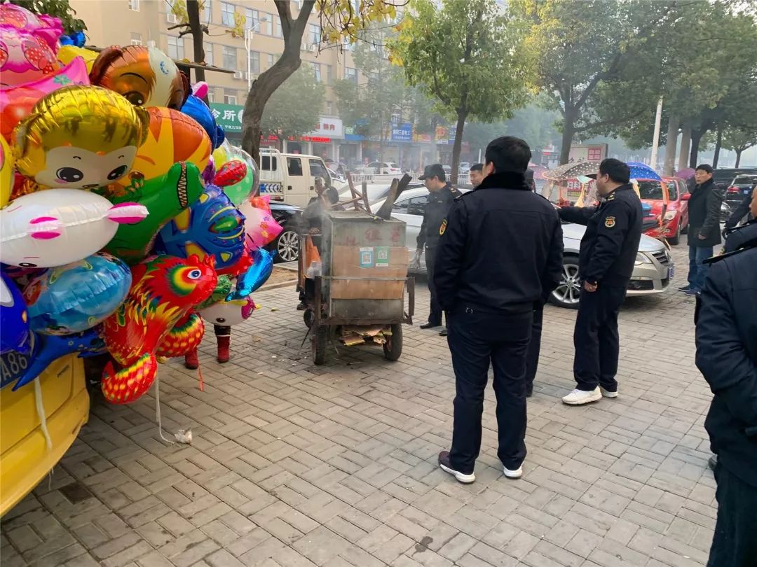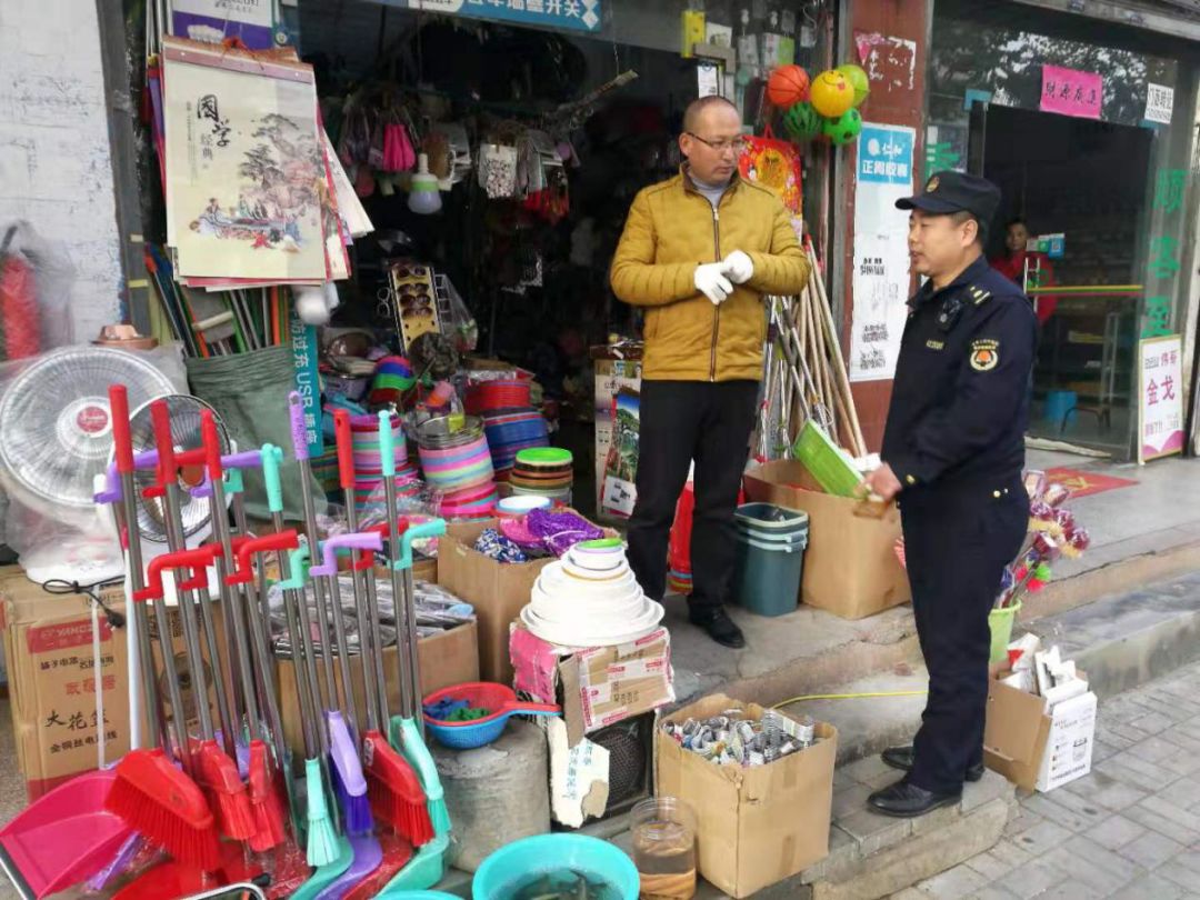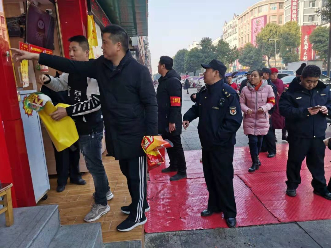 12月11日,何店镇联合村镇中心人员及居委会对镇区占道经营、乱堆乱放不文明行为进行集中整治。