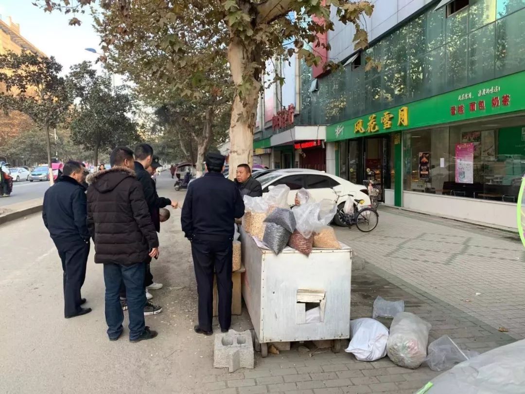 12月12日,南郊办事处联合城管城区分局,在南郊解放西路、青年西路、擂鼓墩大道、金三角、炎帝大道等地巡查执法,劝导占道经营的摊贩,拆除青年西路的违规建筑。
