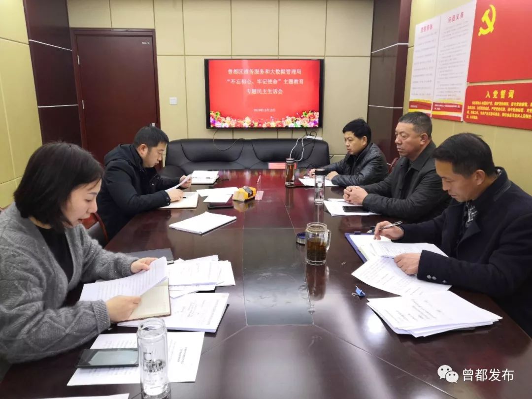 12月12日,曾都区政务服务和大数据管理局召开“不忘初心、牢记使命”主题教育专题民主生活会,区委第十巡回指导组到会指导。