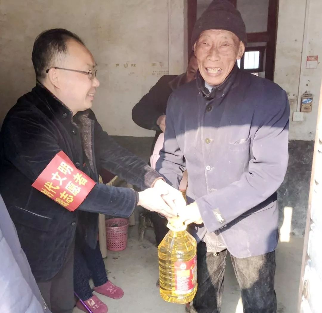 宣讲活动结束后,志愿服务队员走访了该村文明模范家庭,慰问了贫困户,与他们拉家常、话党的好政策,详细地了解他们的生活情况,并为他们送去了大米、食用油等日常生活用品。
