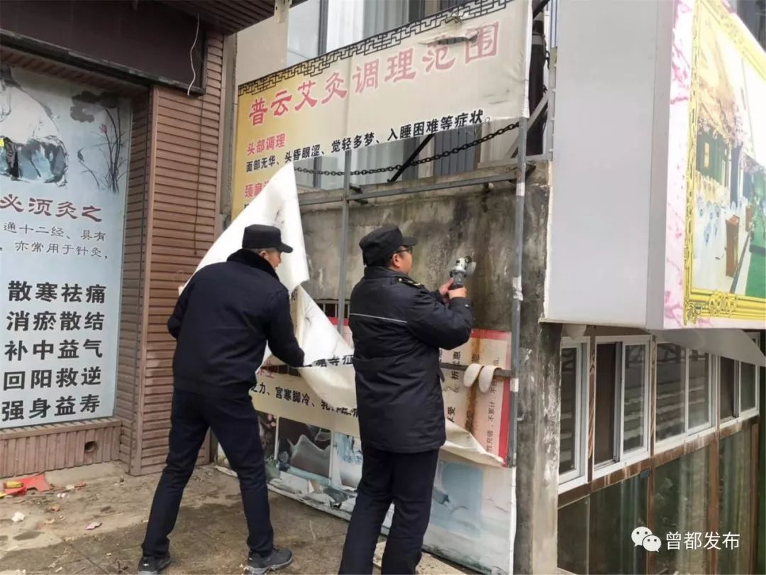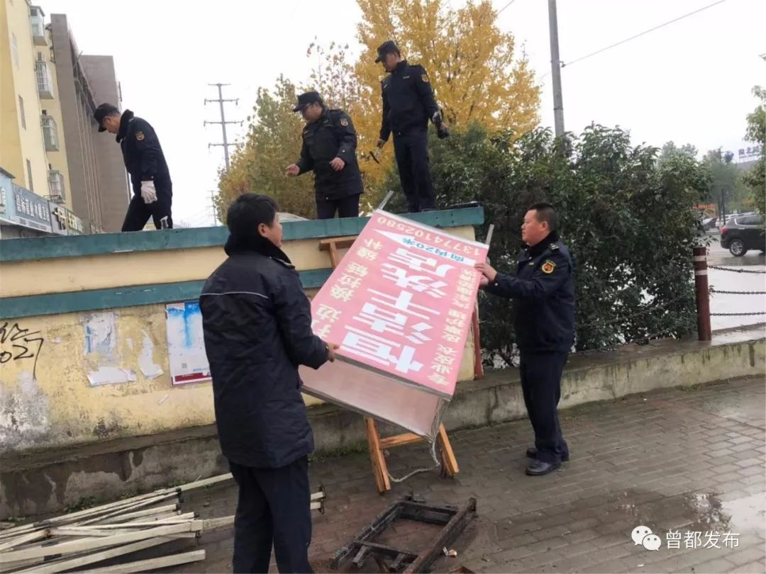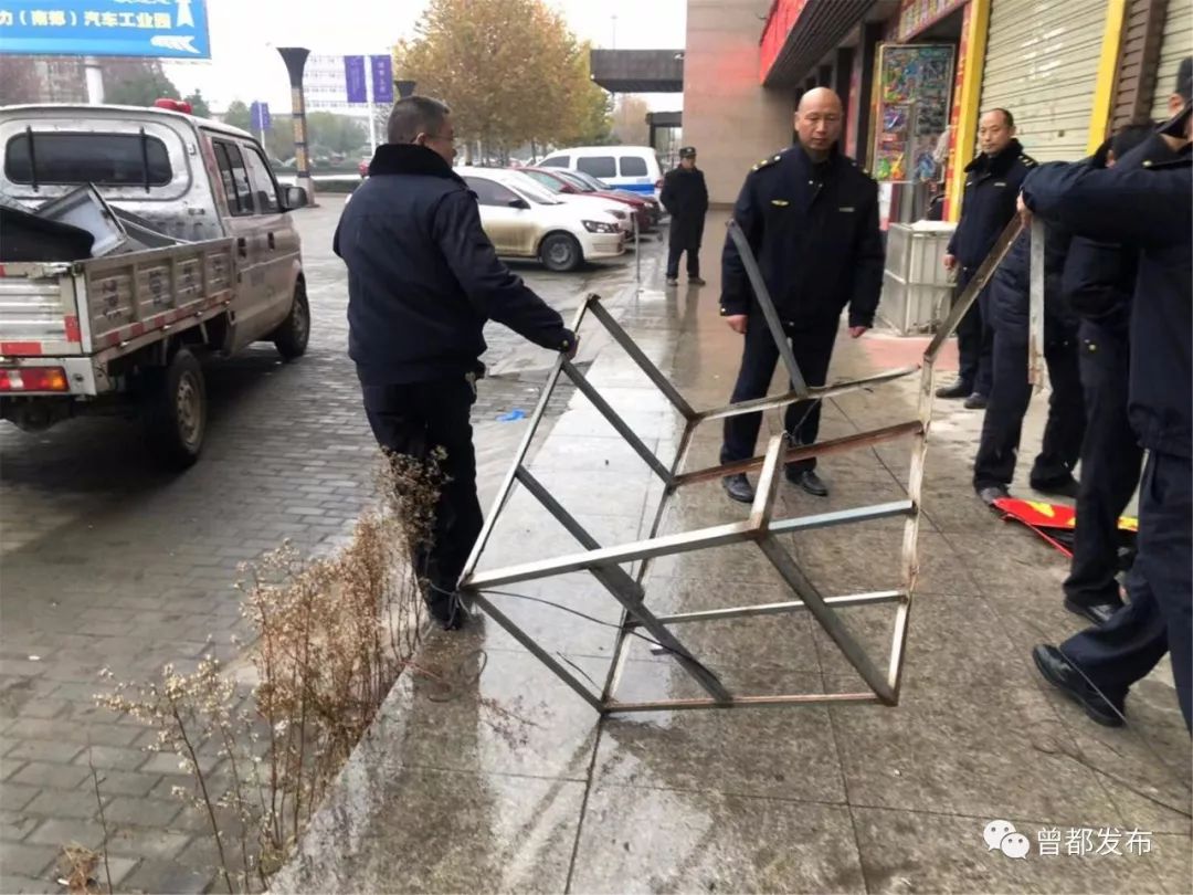 12月16日,曾都区城管执法队员配合府河镇政府对当地重点路段进行市容环境整治。
