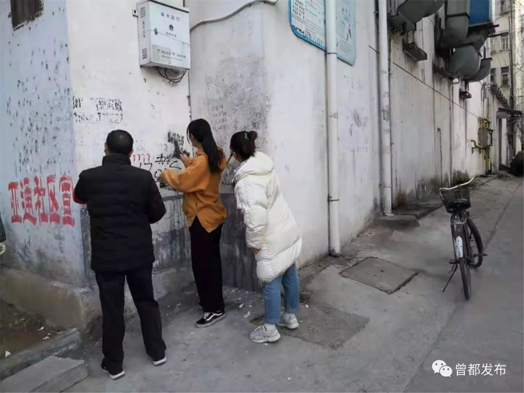 12月17日,北郊办事处各社区联合城管下沉人员,巡查管理辖区重点路段占道经营、摆摊设点问题,亚通社区组织人员对亚通巷内“牛皮癣”广告进行了集中清理。