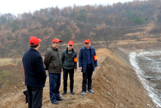 志愿者们在水利建设现场检查工程质量和进度