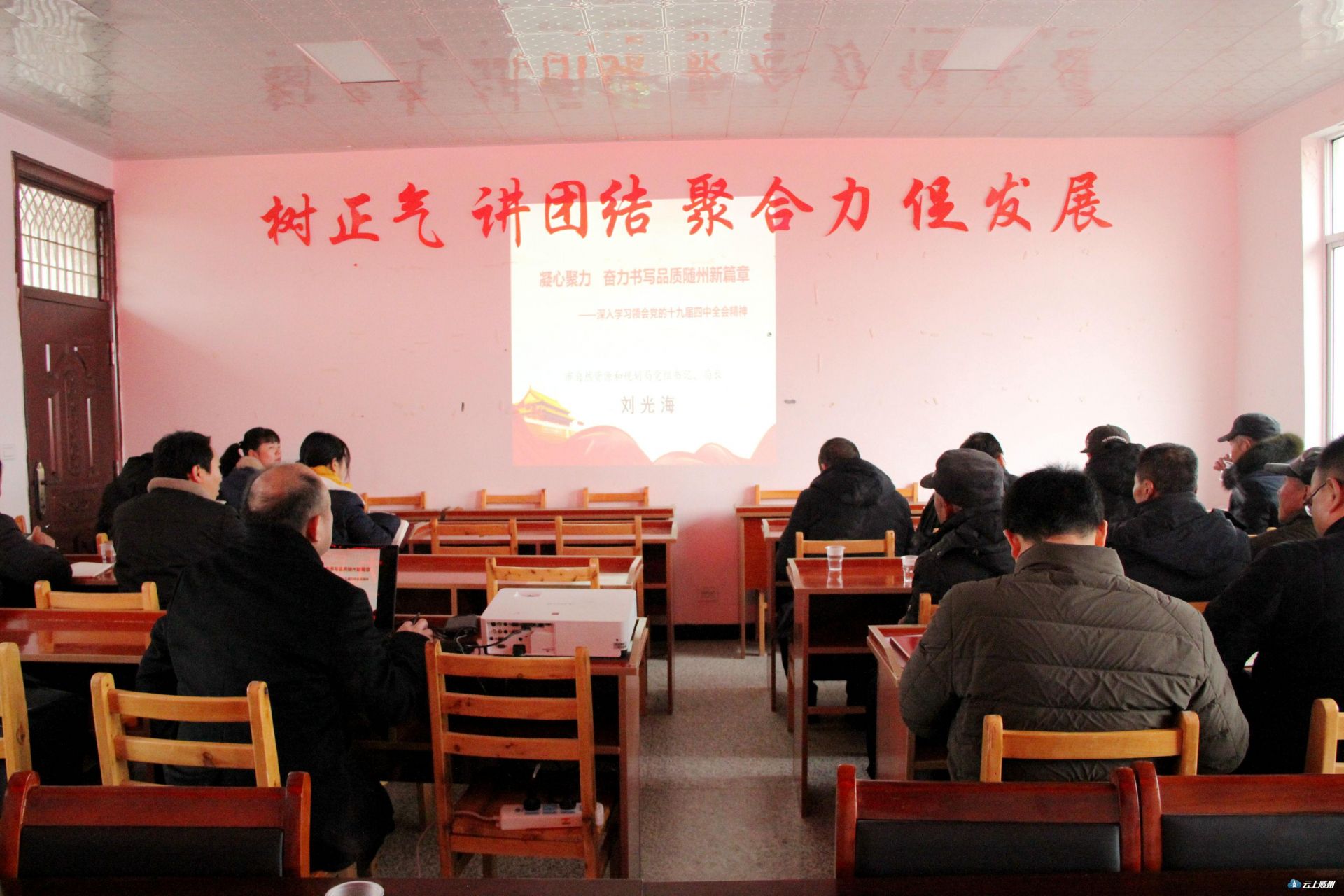 刘光海以《凝心聚力 奋力书写品质随州新篇章 —深入学习领会党的十九届四中全会精神》为题,紧紧围绕党的十九届四中全会精神,从十九届四中全会召开的重大意义、主要内容及如何贯彻落实等方面,深入系统解读了党的十九届四中全会精神,并对如何更好地推动自然资源和规划系统工作和脱贫攻坚工作进行了安排部署。