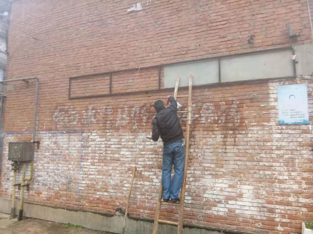 12月20日,北郊办事处对辖区背街小巷墙面“牛皮癣”进行集中清理。