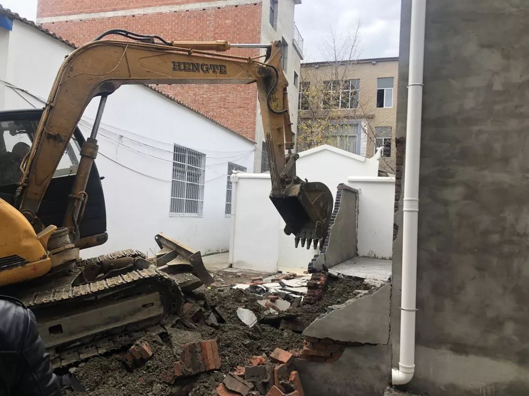 12月20日,何店镇联合区城管执法局,对何店二中学校附近违章建筑进行全面拆除。