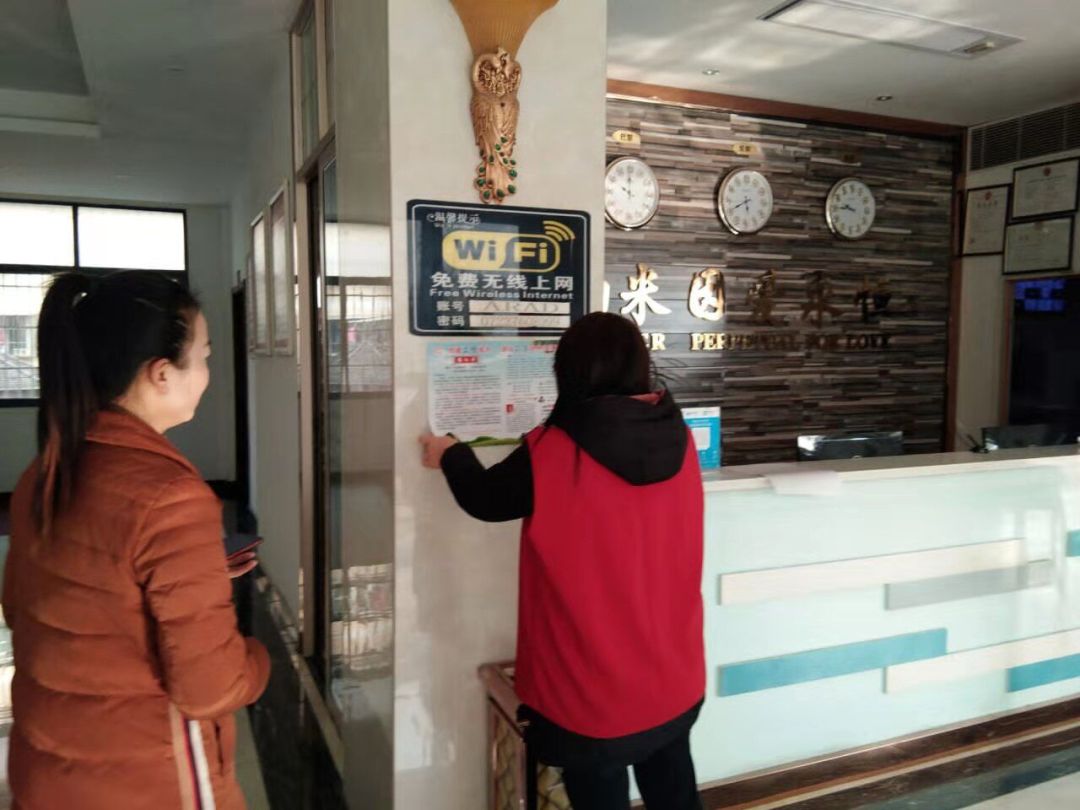 12月20日,南郊办事处组织志愿者、网格员,在辖区内宣传文明创建工作,发放和张贴公益广告。