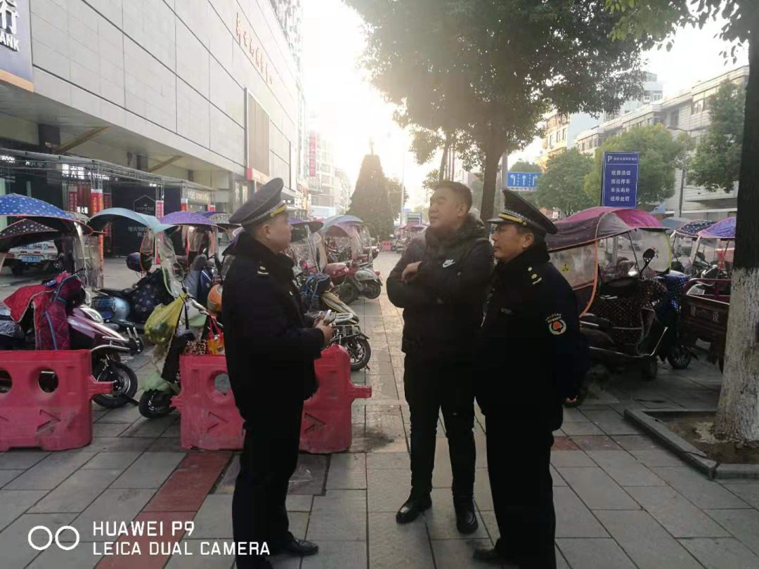 12月20日,西城办事处联合市区城管执法队员对辖区占道广告牌、车辆乱停乱放等不文明行为进行整治。