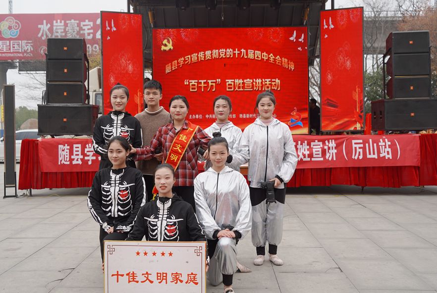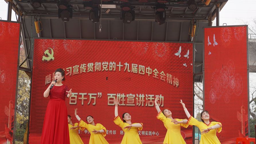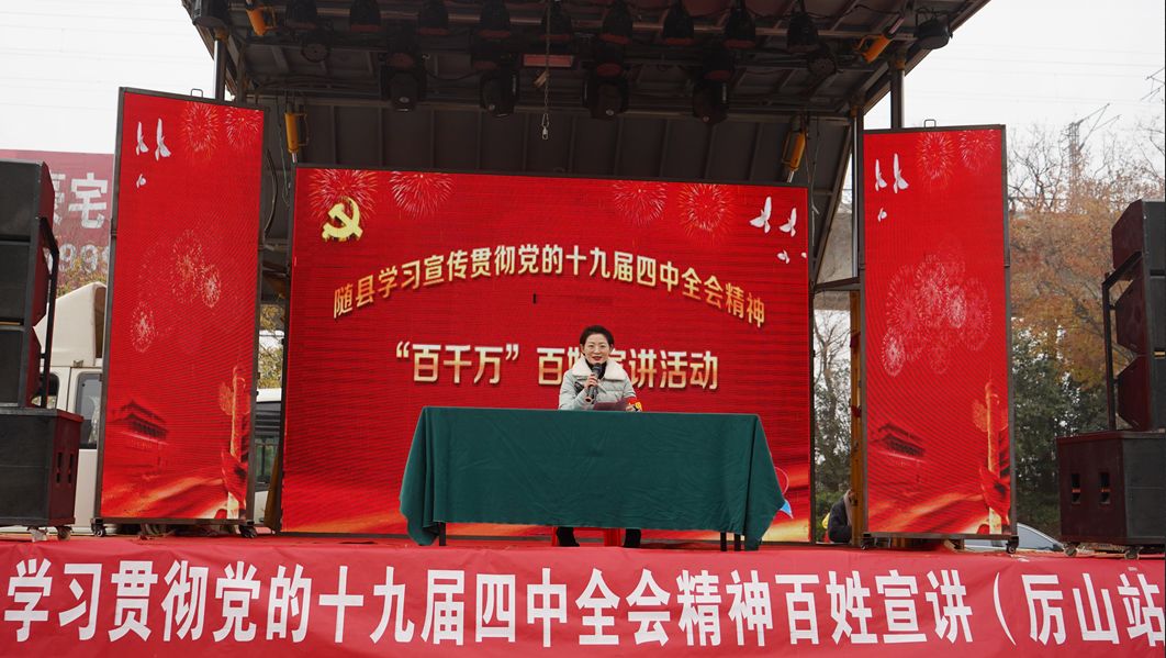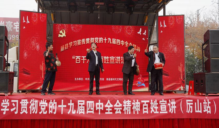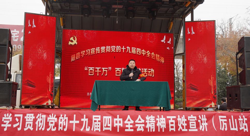 12月23日,随县学习宣传贯彻党的十九届四中全会精神“百千万”百姓宣讲活动首场走进厉山镇,在新厉山小区广场上精彩启幕,为全镇11个村(社区)的300余名老百姓送来了一场接地气、润人心的理论政策宣讲。