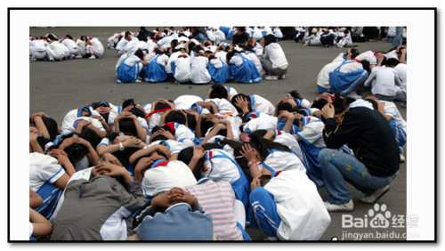 3;若是晃动强烈的,身处高楼层的,接近房门的,应该立即走到走廊上;在屋内的,立即躲在桌子底下,双手抱头。