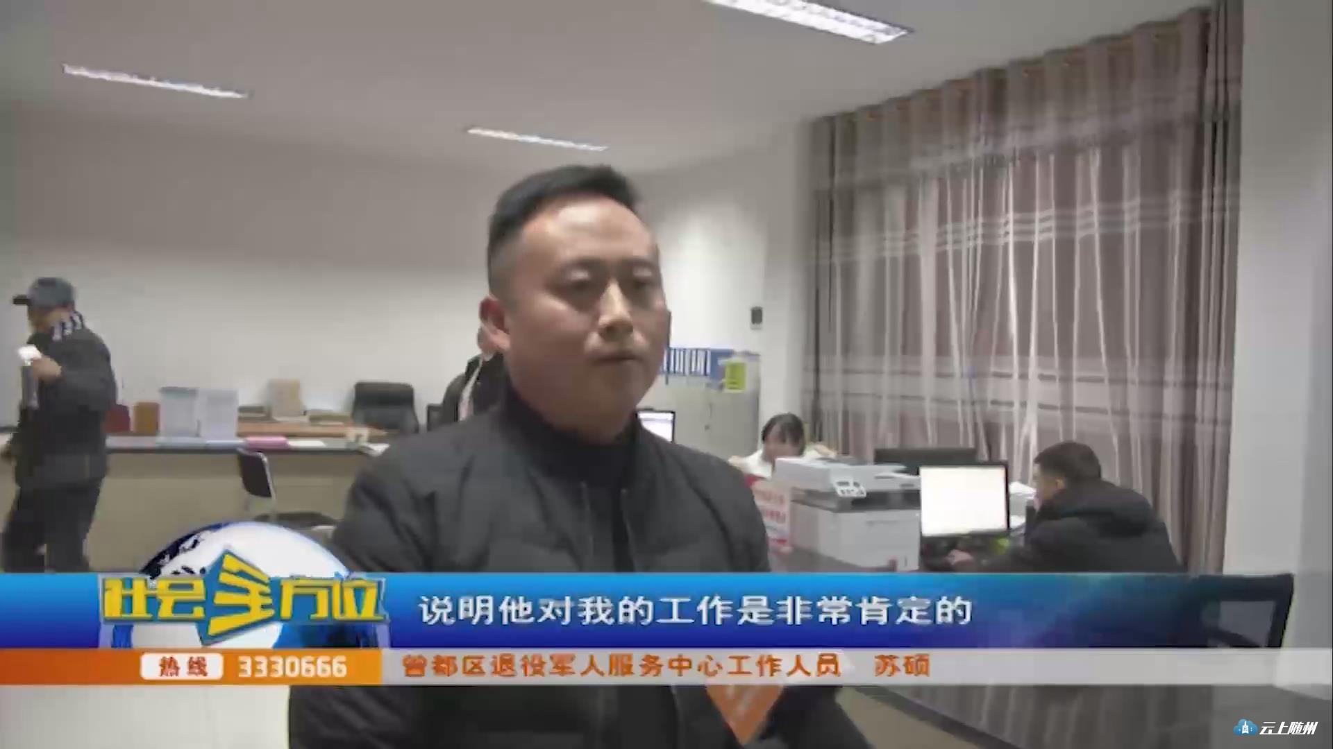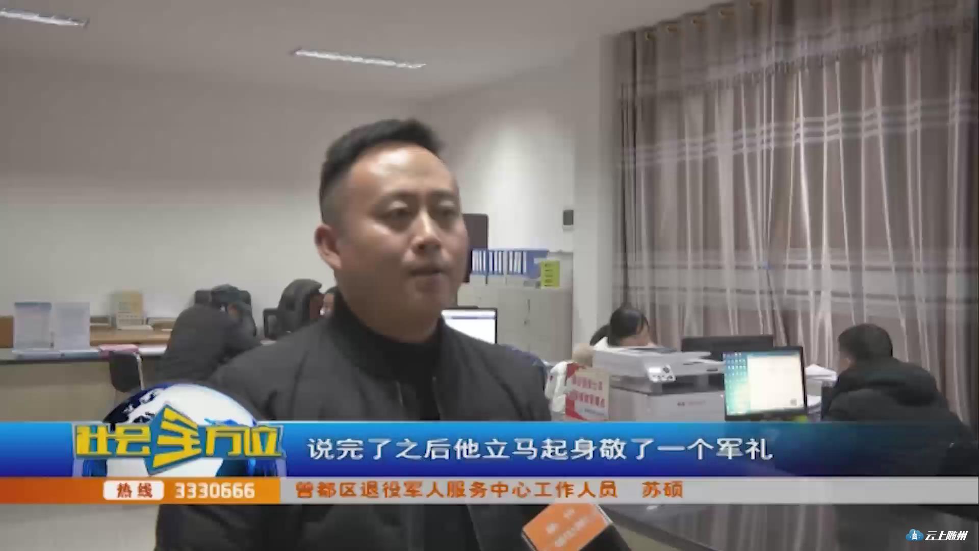 【采访】曾都区退役军人服务中心工作人员 苏硕:他说(退役军人)事务部去年成立后,我们现在终于找到娘家了,非常激动,我把他需要准备的资料写在了一张纸上,让他回家把这些资料准备好,拿到原安置单位进行申报,说完了之后他立马起身敬了一个军礼,作为一个退伍老兵,我本能的反应是立马站了起来,给他回了一个军礼。
