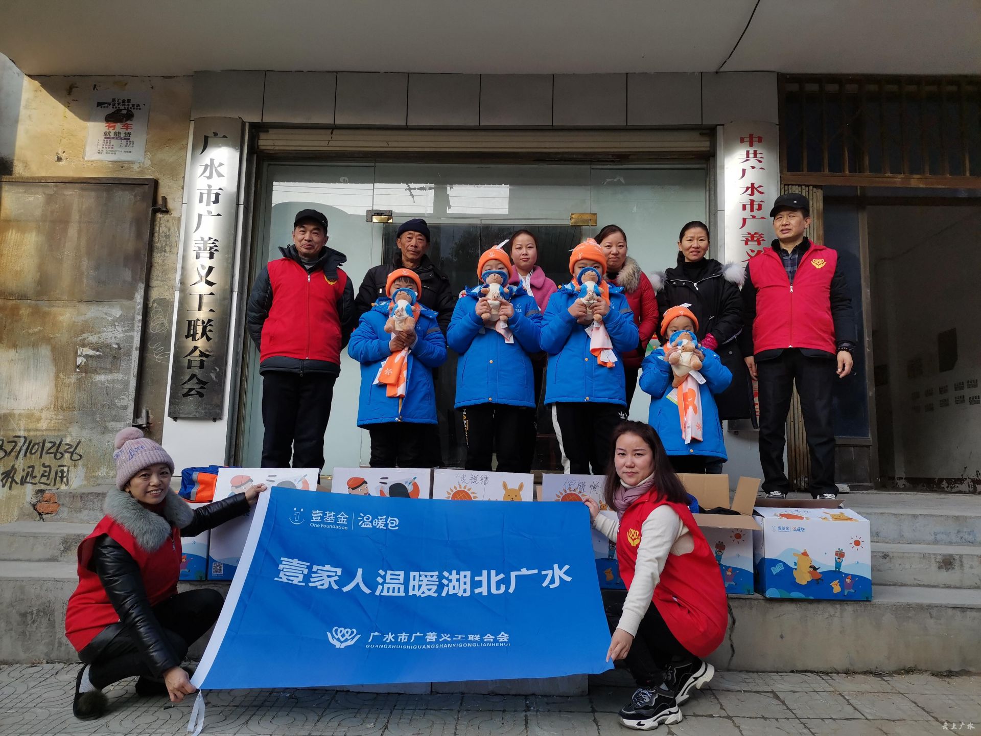 12月28日,广水市广善义工联合会为蔡河镇8名贫困生发放壹基金“儿童温暖包”。截止目前,2019年由社会各界爱心人士通过壹基金腾讯公益平台——“99公益日”筹集的84个儿童温暖包全部发放完毕。