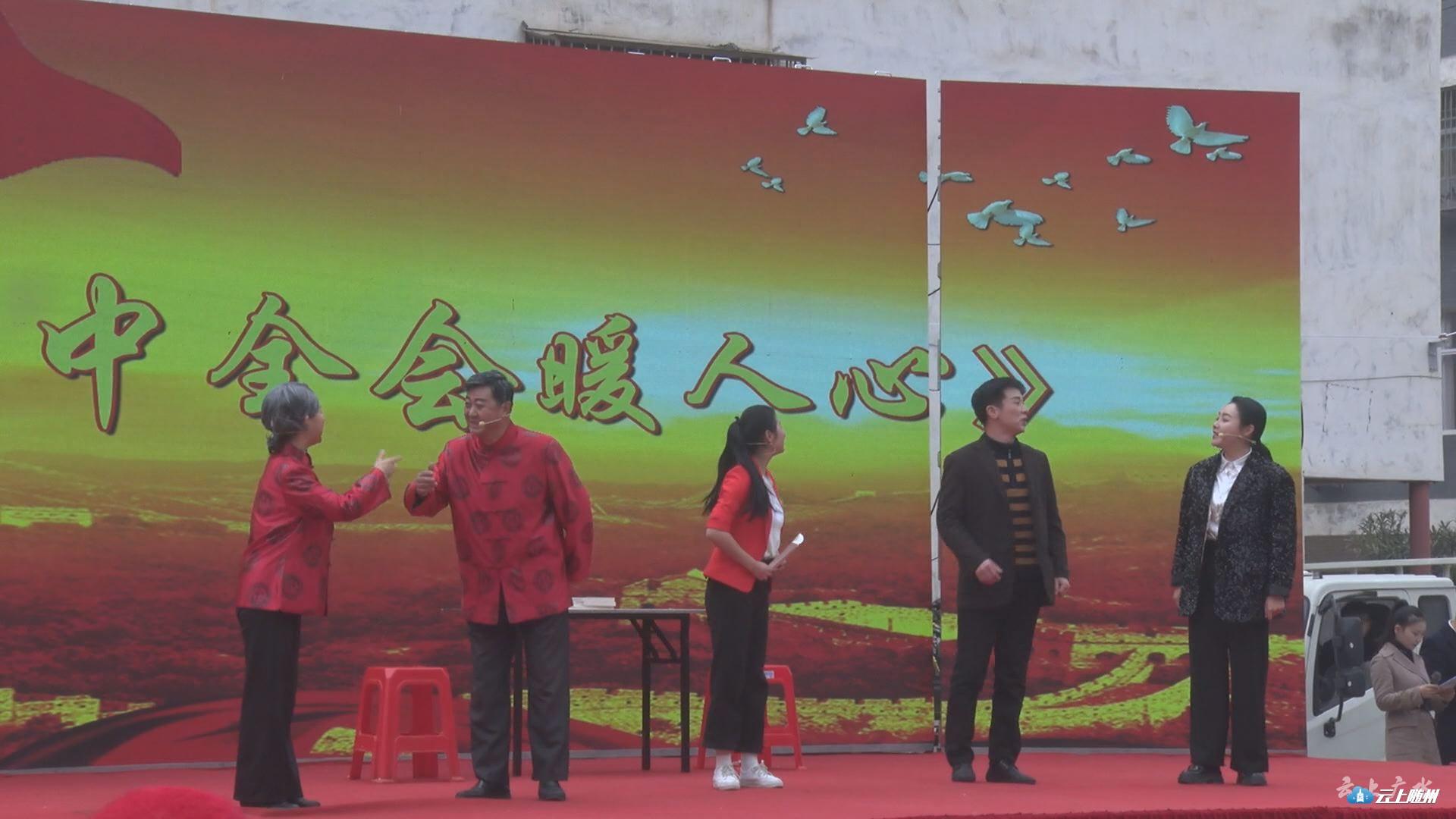 进入腊月,办年货,写春联,看大戏,大街小巷呈现出浓浓年味。顶着寒风,冒着严寒,二十多位文艺工作者为千余名群众献上了舞蹈、小品、花鼓戏、红歌联唱等精彩节目,特别是随州市税务局职工发自肺腑的演讲,讲述近几年税务系统涌现出来的先进人物和典型事迹,紧扣主题,感人至深。