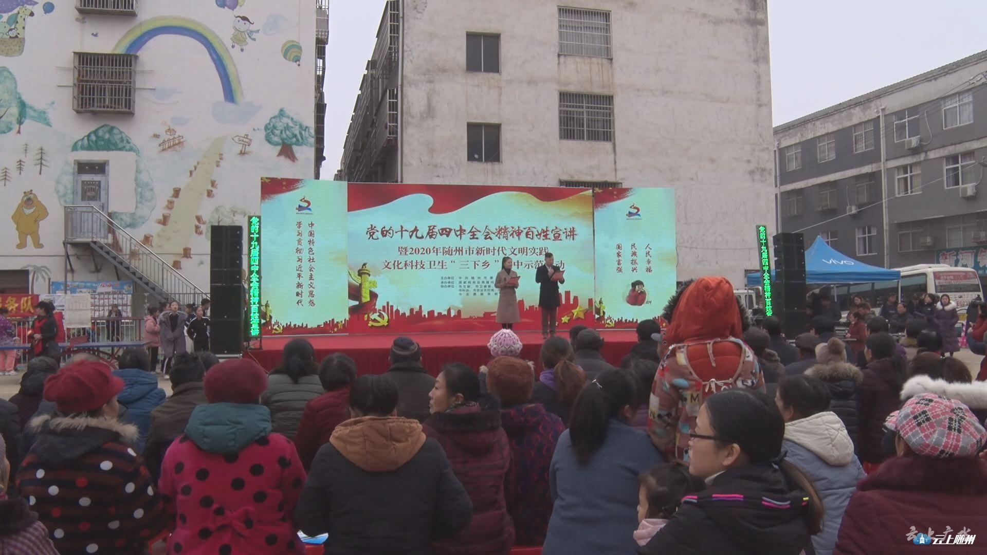 12月30日一大早,由随州市委宣传部主办的党的十九届四中全会精神百姓宣讲暨2020随州市新时代文明实践中心文化科技卫生“三下乡”集中示范活动在广水市关庙街拉开序幕。
