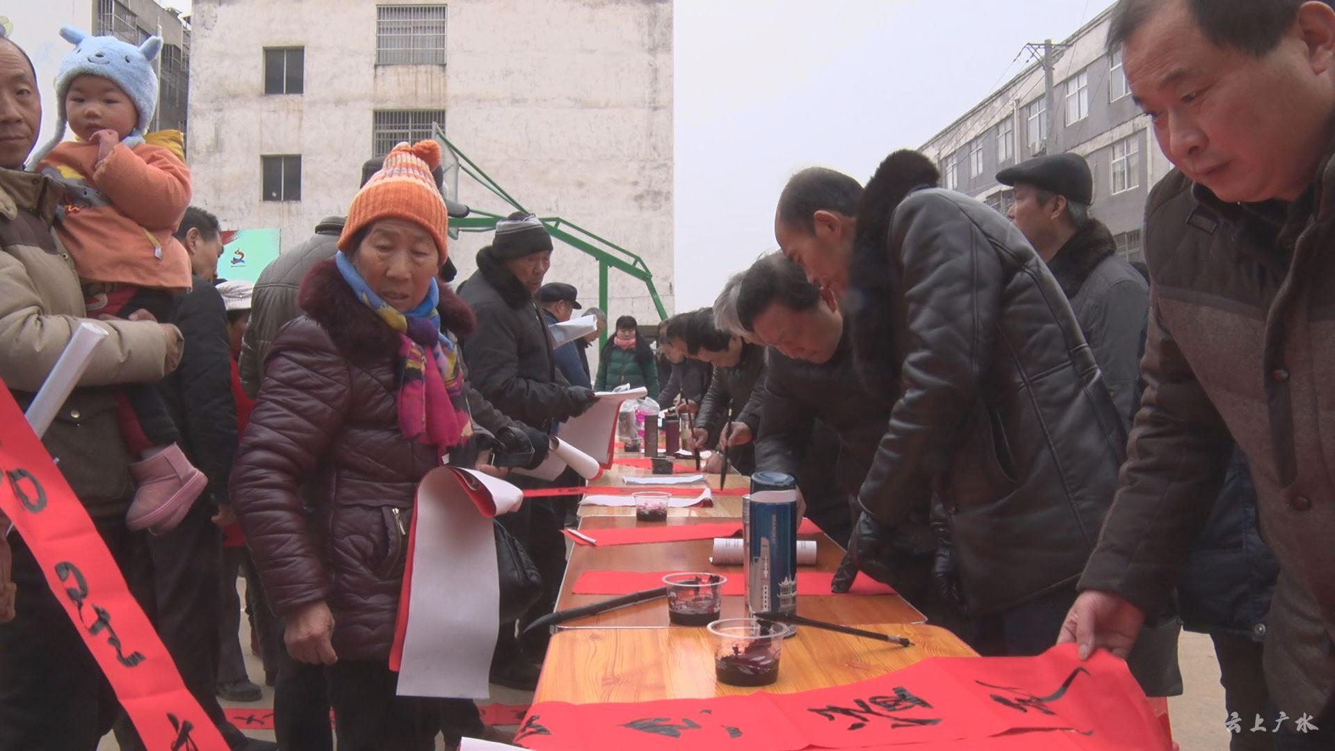 春节家家户户都要贴春联,来自随州及广水市15位书法家最受群众欢迎。他们挥毫泼墨,为大家义务写春联,一幅幅颂党恩,抒发美好生活,祝福新春的对联被一抢而空。群众热情感染了书法家,当天书法家共书写了四百多幅春联,将春天最美好的祝福送到大家心坎上。
