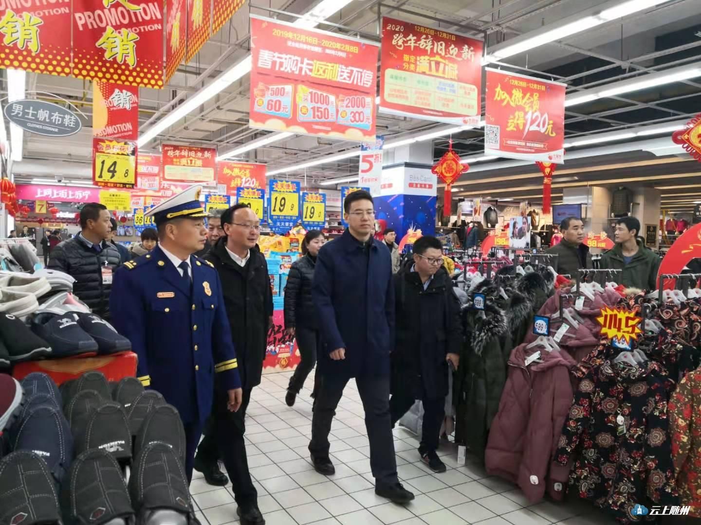 12月30日下午,克克副书记、吴超明副市长一行来到大润发超市、五眼桥市场,视察元旦节前市场保供稳价及安全生产工作情况,期间对市场猪肉的储备和供应、超市的货物储备情况进行了详细询问,同时对安全消防设施进行了认真查看,市商务局龚峻副局长参加陪同。