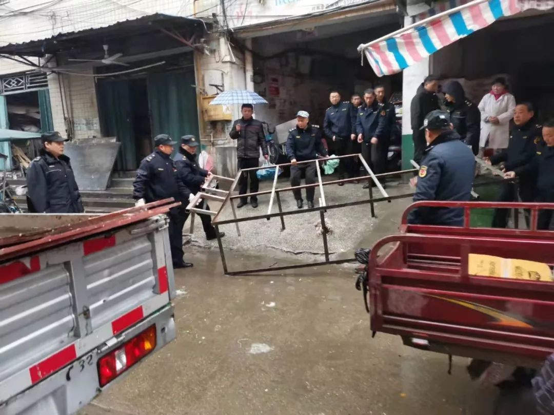 会前,党委书记彭劲松带队到集镇街道开展城乡环境秩序综合整治。