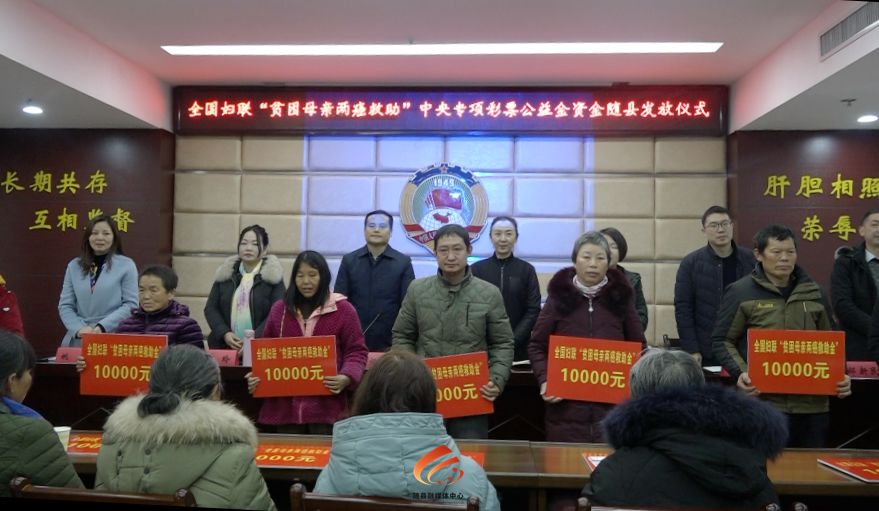 随后,王波来到“贫困母亲两癌救助”资金发放现场,在此项活动中,省、市、县领导共为随县36名贫困“两癌”妇女发放36万元救助资金,爱心企业代表——中国人保寿险随州中心支公司还为随县贫困妇女送来米、油等生活物资。王波充分肯定了随县妇联在农村妇女“两癌”救治工作中取得的成绩,她希望,各级妇联要加大农村妇女“两癌”检查相关政策和妇女健康知识的宣传,切实落实救助机制和帮扶政策,努力提高广大妇女的健康水平。