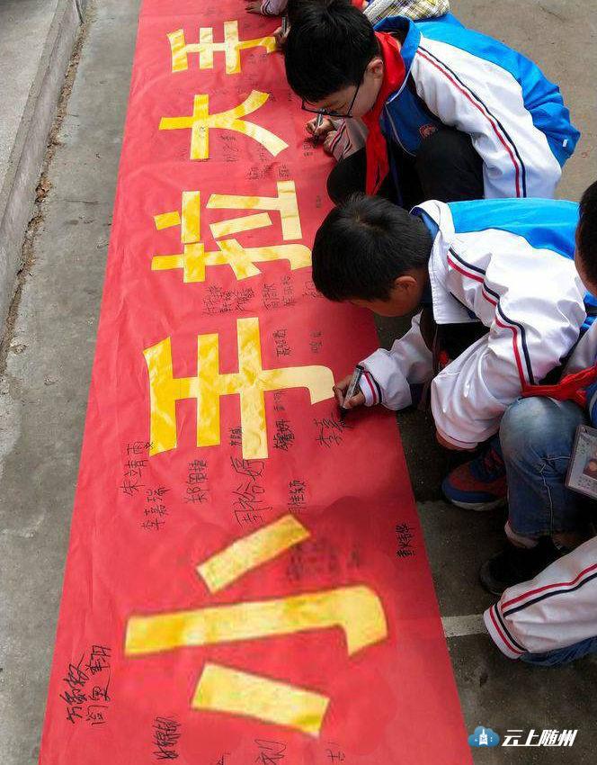 学生们在宣传条幅上郑重签下自己的名字