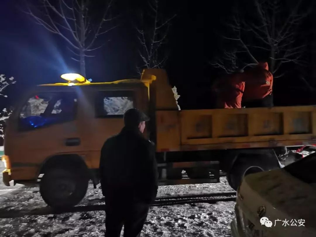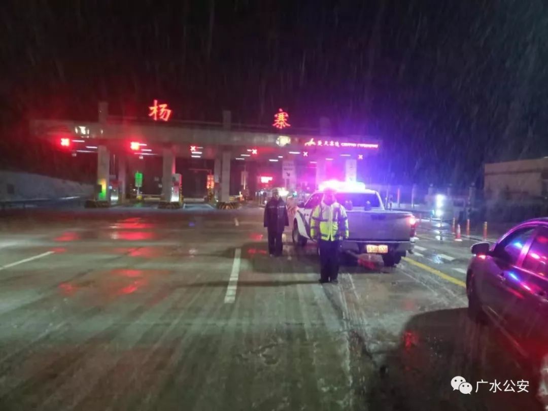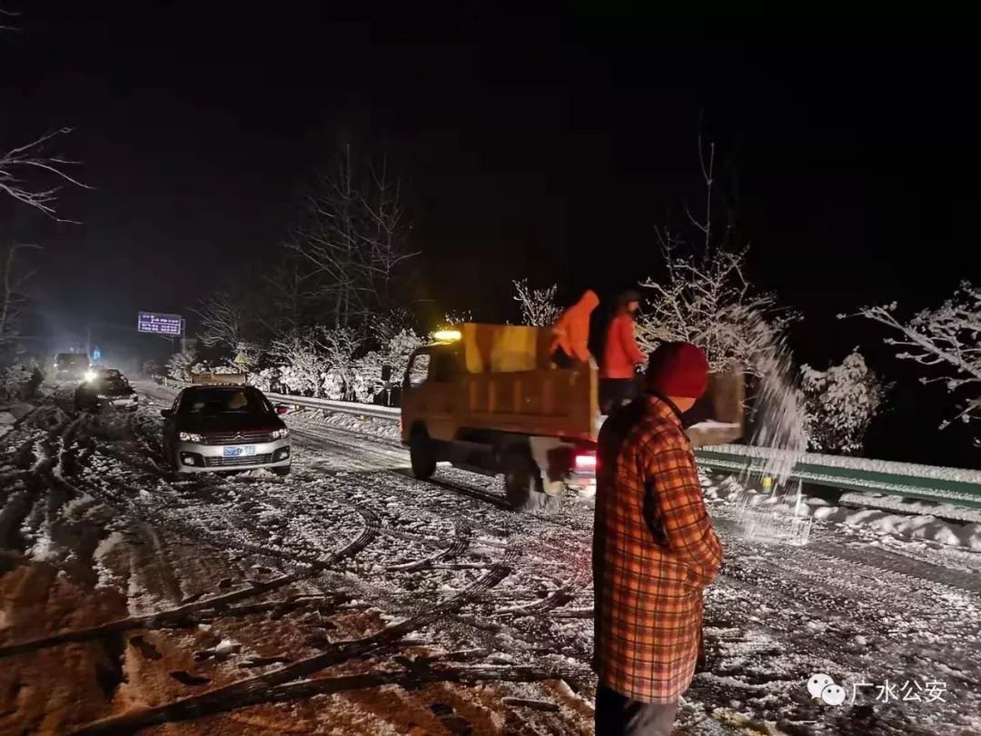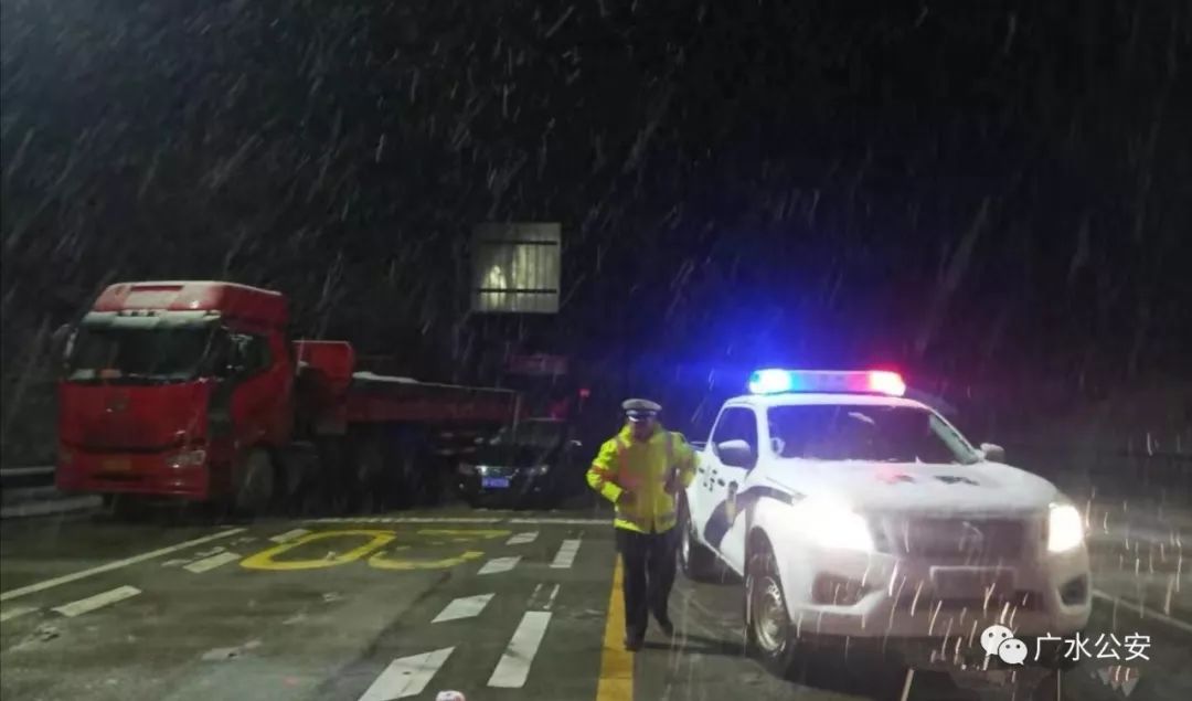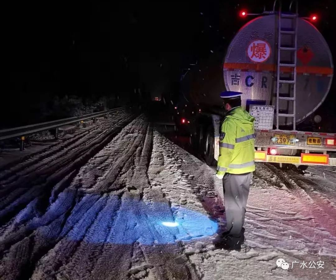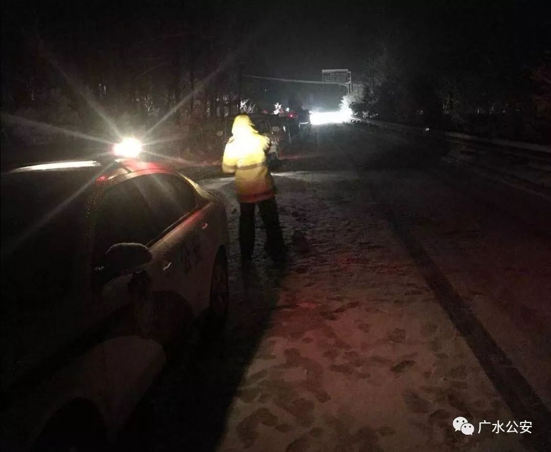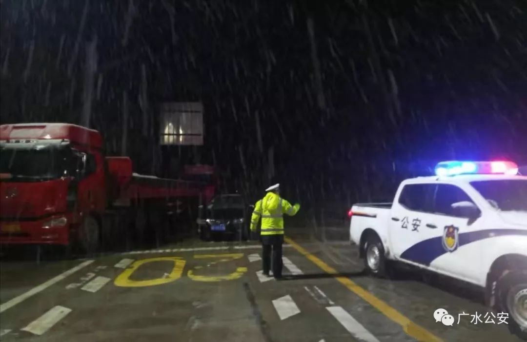 为了过往司机安全,道路畅通,广水市公安局组织交警连夜集结警力,赶赴受阻的武胜关、平靖关段,战严寒、斗风雪、疏导交通、引导车流、帮助被困过往司机。