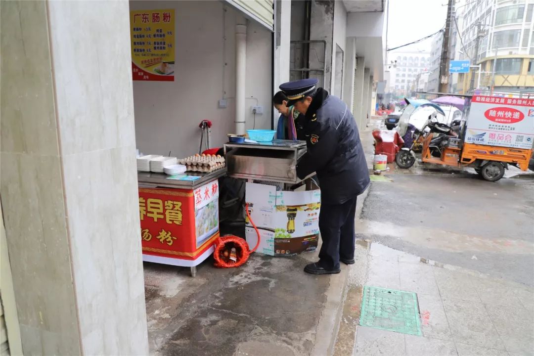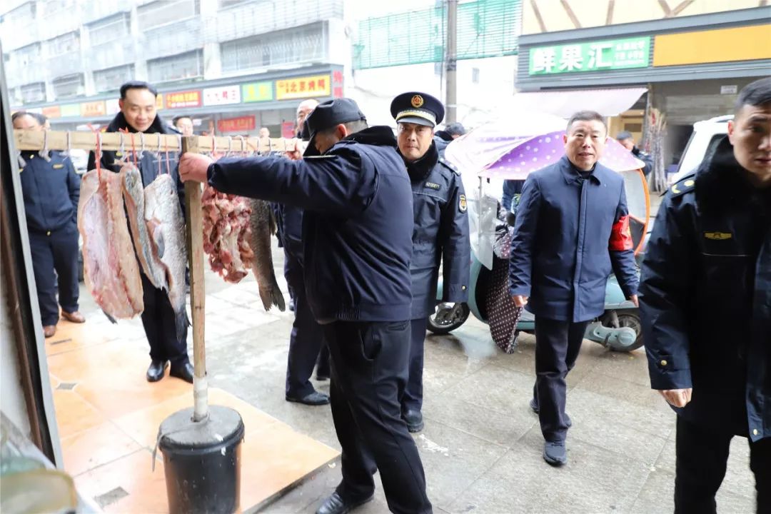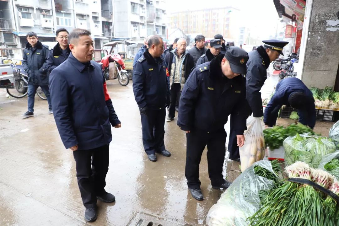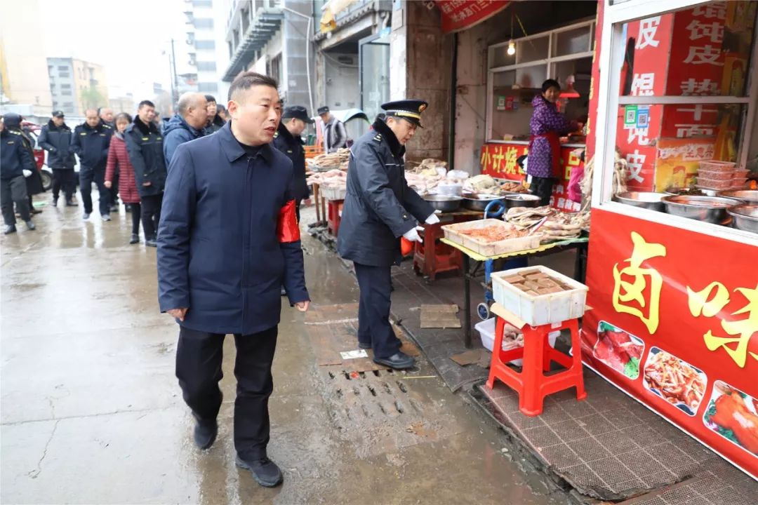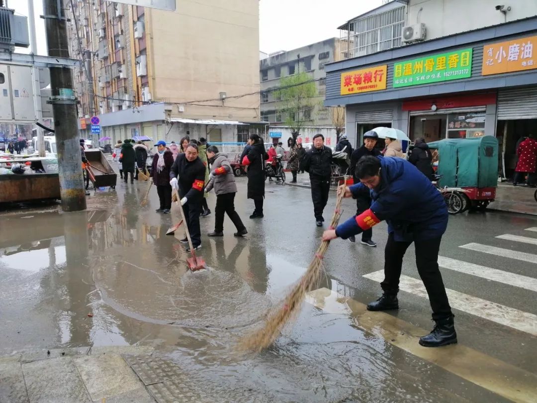 早九点,寒风凛冽,雪花飞扬,在简短的动员会后,专班开始对水西门菜场开展集中整治。