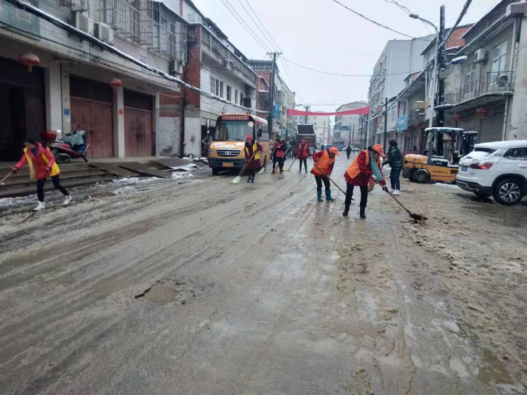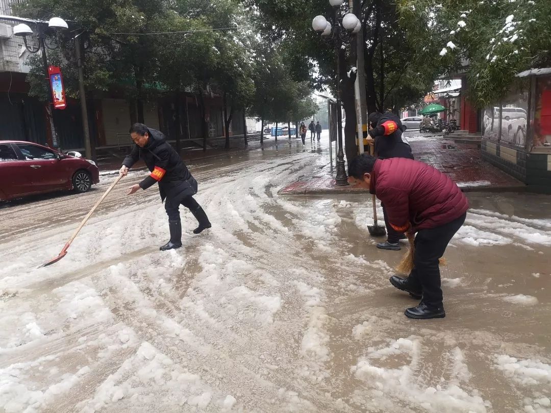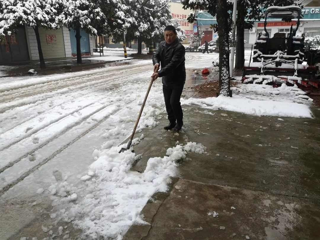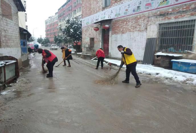 1月9日,府河镇组织机关干部职工对镇区主街道积雪进行清理,同时安排居委会干部动员各组党员、群众积极铲除门前和主街道积雪,清理因积雪压断的残枝。
