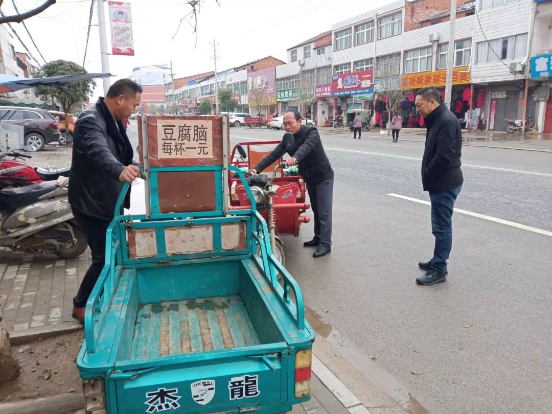 1月9日,万店镇城建专班前往街道督促保洁人员及时清理积雪,保证路面畅通和车辆安全。对道路两侧乱停的电动车三轮车进行劝阻引导,确保集镇整洁有序。