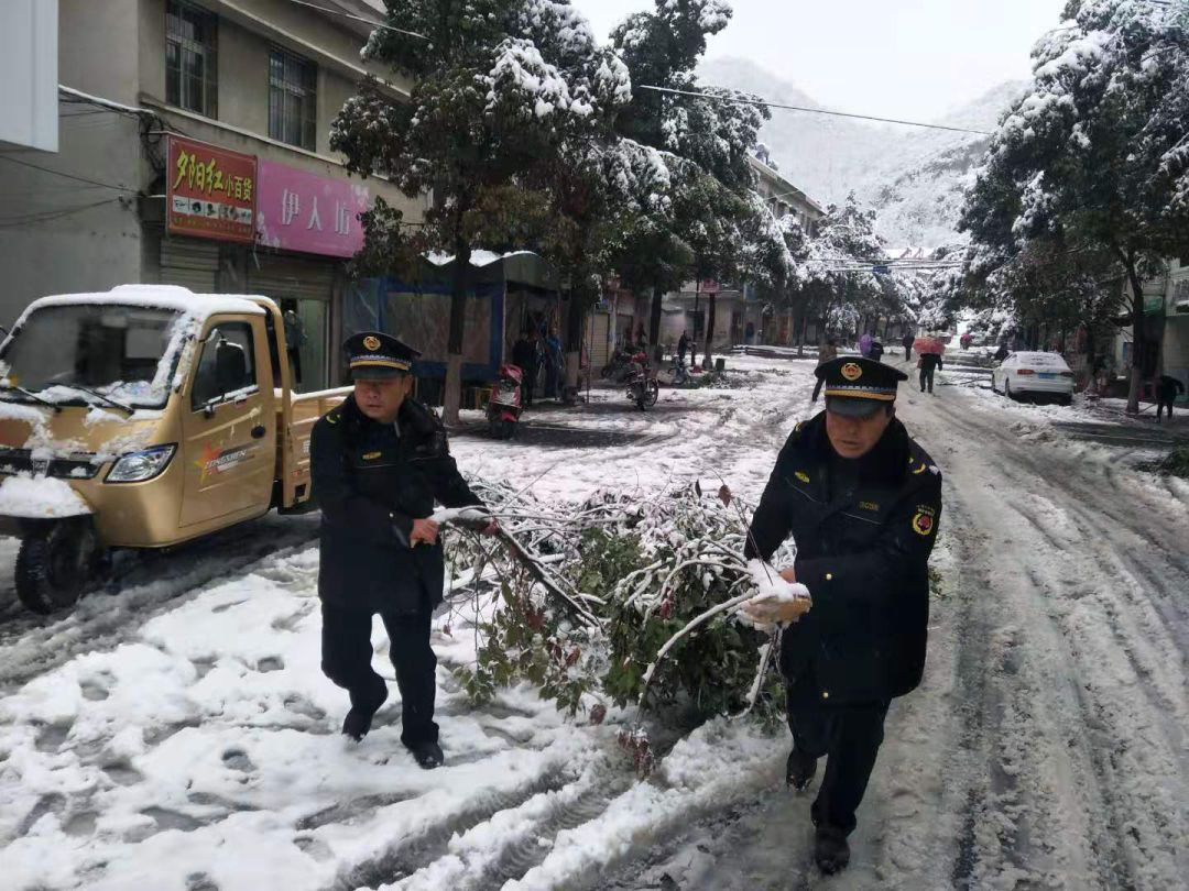 1月9日,洛阳镇组织干部、职工走上街道,清理树枝、清扫积雪,引导居民、商户参与环境秩序综合整治。