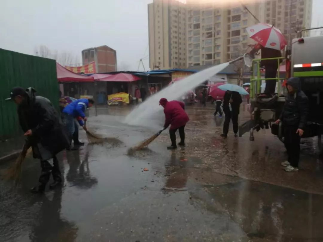 1月9日,北郊办事处包街巷干部,社区工作人员联合城管执法部门、市场监管部门,开展环境卫生整治秩序综合整治行动工作。